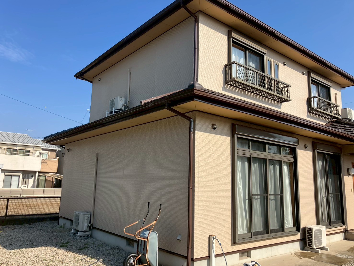 そのため、写真を見比べても「そこまで変わっていない」と感じられるかもしれませんが、外壁のくすみや色ムラが解消され、全体がすっきりと明るい印象に仕上がっています。