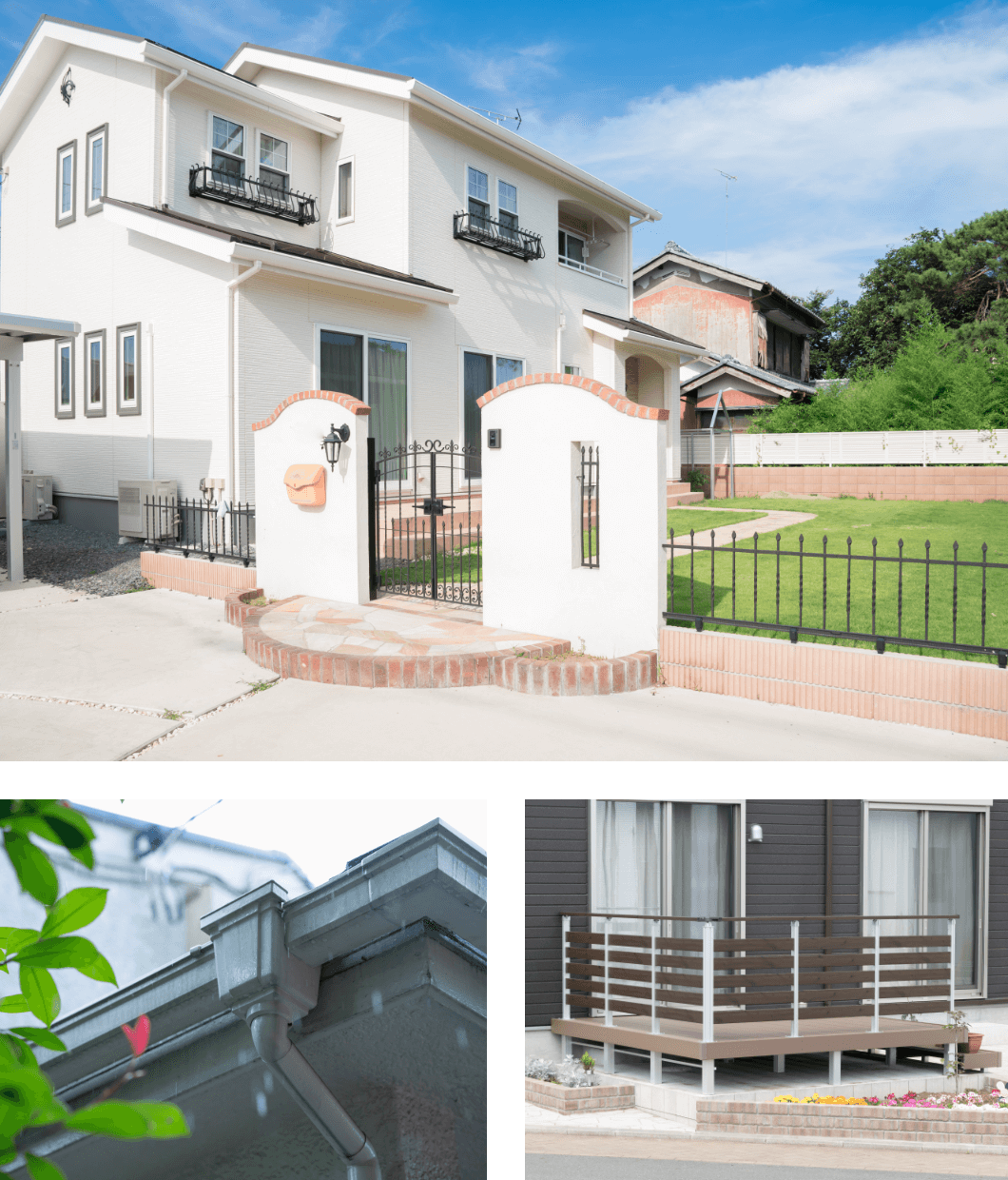 ウラタ建装は、塗装を中心にサービスを展開していますが、外構リフォームや内装リフォーム、雨漏り修理においても豊富な実績があり、お家全体として一体感のあるリフォームが強みです。住まいの塗り替えと併せて外構リフォーム・内装リフォームをお考えの場合や、屋根・外壁の修理が必要な場合は、リフォーム工事のスペシャリストが出動し、一貫してお任せいただくことができます。